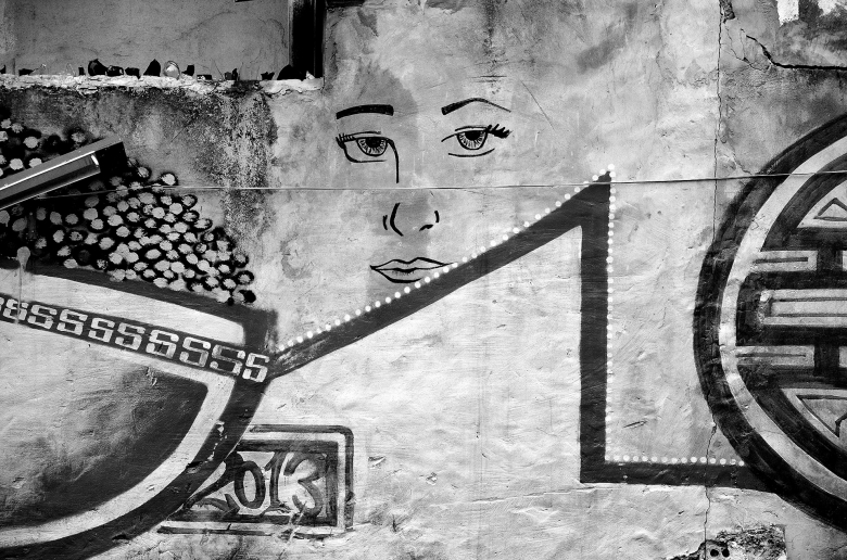 La ville dresse ses murs. A moins que les murs ne dressent la ville, avec leur langage. Au pied du mur, l'on voit l'artiste plus que le maçon. La photographe perçoit le deux et nous donne à penser cette parole de la ville, cri ou...mur mure, d'une humanité présente absente .